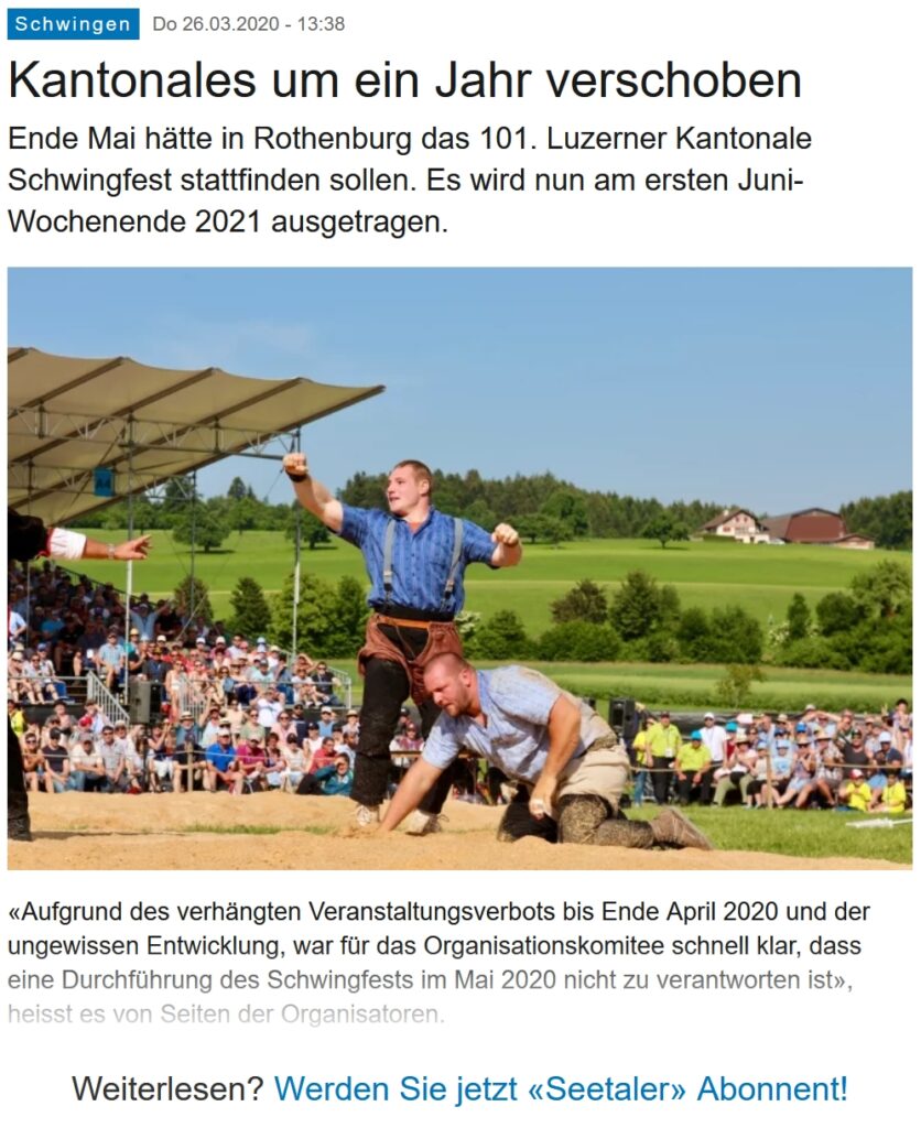 29. März 2020 Presse, SeetalerBote 0 Comments Tags: Bitte teilen Sie Diesen Inhalt teilen Öffnet in einem neuen Fenster Öffnet in einem neuen Fenster Öffnet in einem neuen Fenster Öffnet in einem neuen Fenster Öffnet in einem neuen Fenster Öffnet in einem neuen Fenster Öffnet in einem neuen Fenster Öffnet in einem neuen Fenster You Might Also Like Vier ISV-Kantonale erst im Jahr 2022 7. März 2021 Schweizerbauer – Neuer Name für Länz gesucht 3. April 2019 Auch 2021: Kantonalschwingfeste in der Innerschweiz verschoben 8. März 2021
