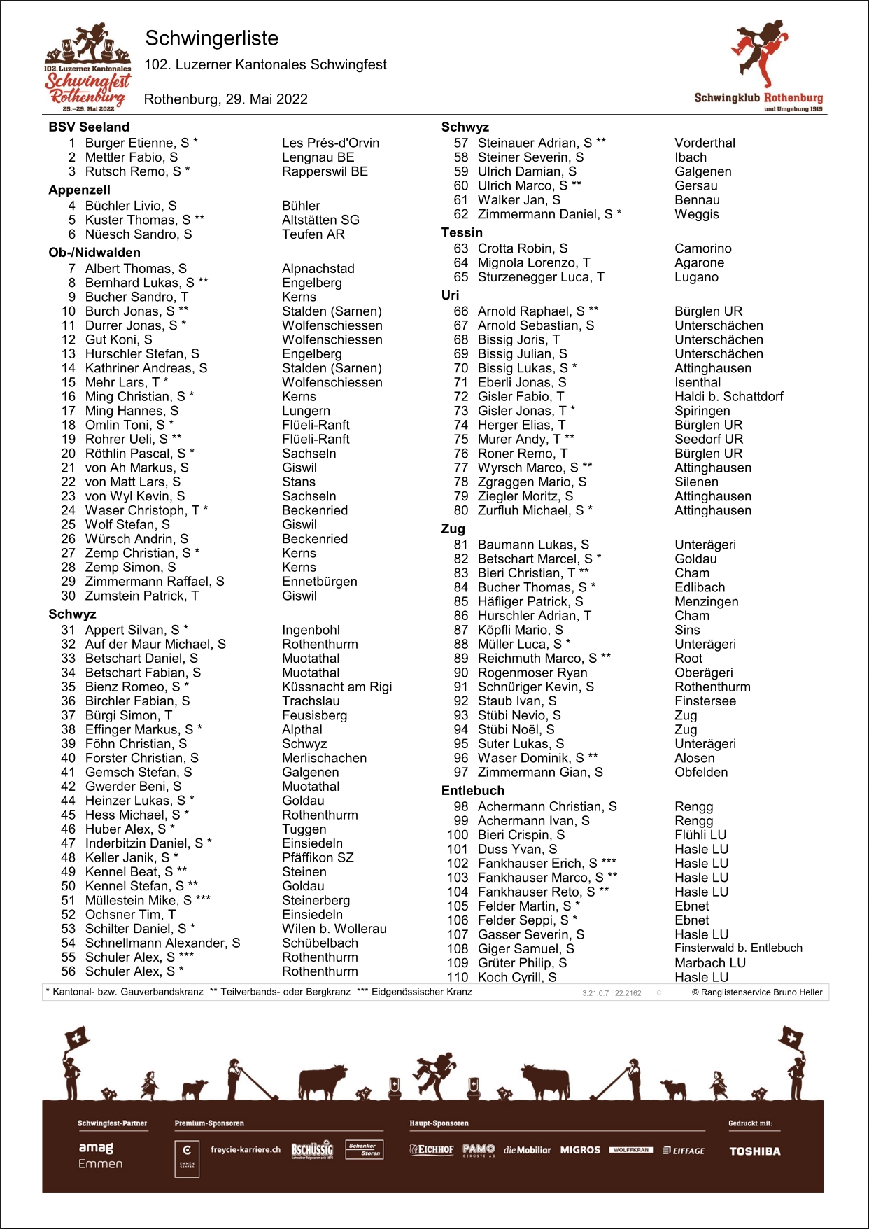 Der organisierende Schwingklub Rothenburg und Umgebung ist mit 25 Schwinger gut vertreten und hofft mit den beiden Teilverbandskranzern, Lang Sven Emmenbrücke und Binggeli Stefan Ruswil sowie den drei Kranzern, Ottiger Lukas Rothenburg sowie Wyrsch Silvio und Daniel Bühlmann Emmenbrücke vorne um die Kränze mitschwingen zu können.